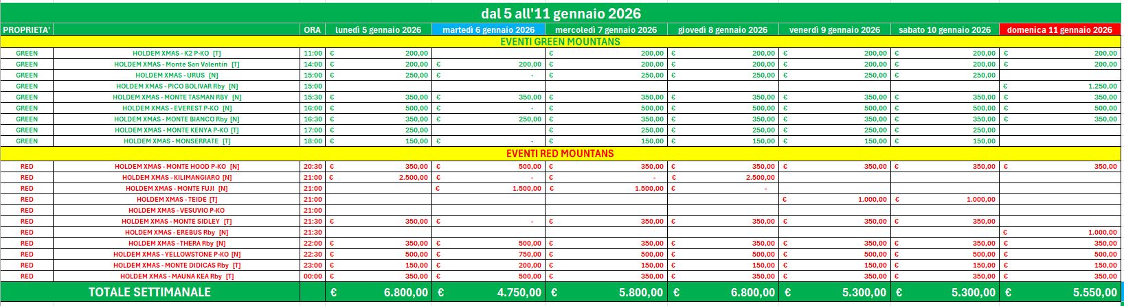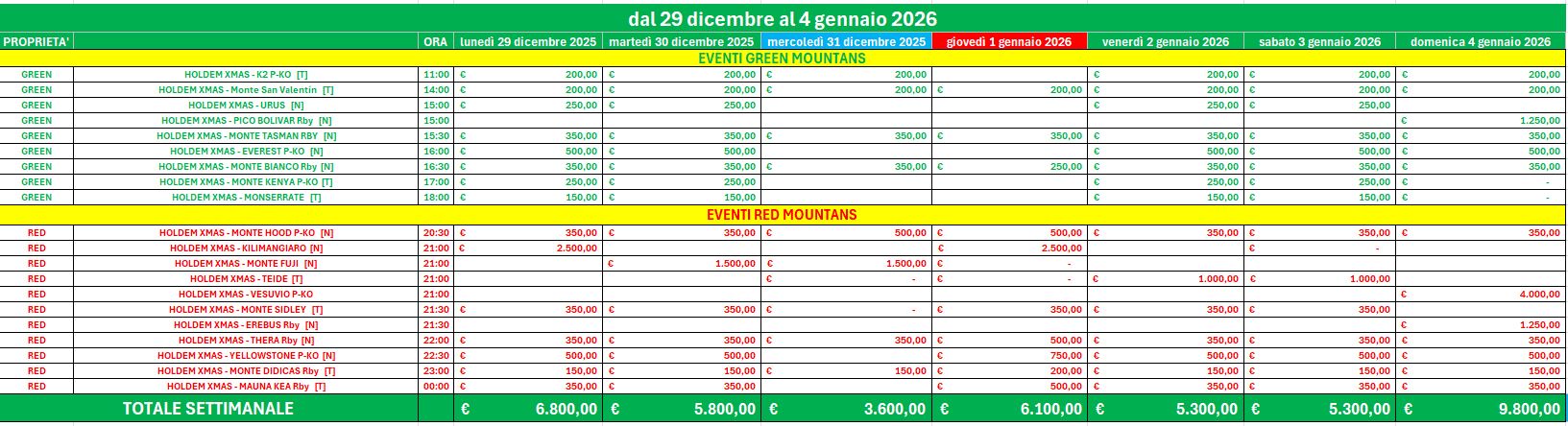 che si giocherà il 25 dicembre e il primo dell’anno con un Montepremi di