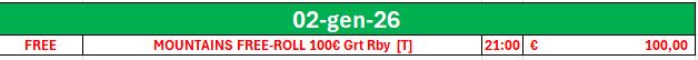 il 2 gennaio 2026 si giocherà il consueto Free-Roll dedicato a tutti coloro che hanno acquisito la categoria